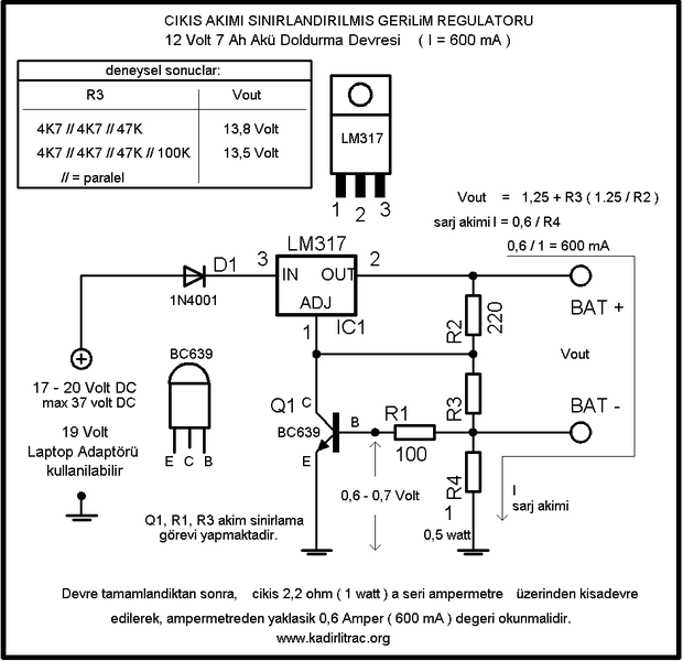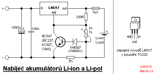 LM317 ile Lityum-iyon (Li-Ion) ve lityum polimer (Li-Pol) hücreleri için basit bir şarj cihazıdır. Şarj karakteristiği aşağıdaki grafikte gösterilmiştir.